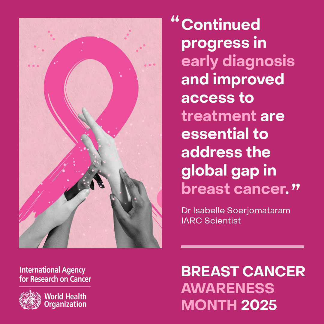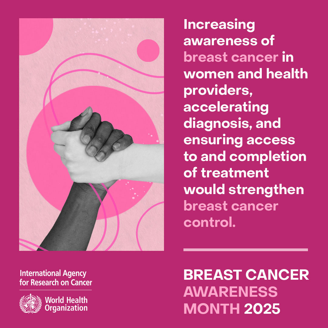 Breast Cancer Awareness Month 2025: Social media tiles To mark Breast Cancer Awareness Month 2025, IARC is making available these social media tiles highlighting some of its most recent research findings related to this disease. View View View View Sharing